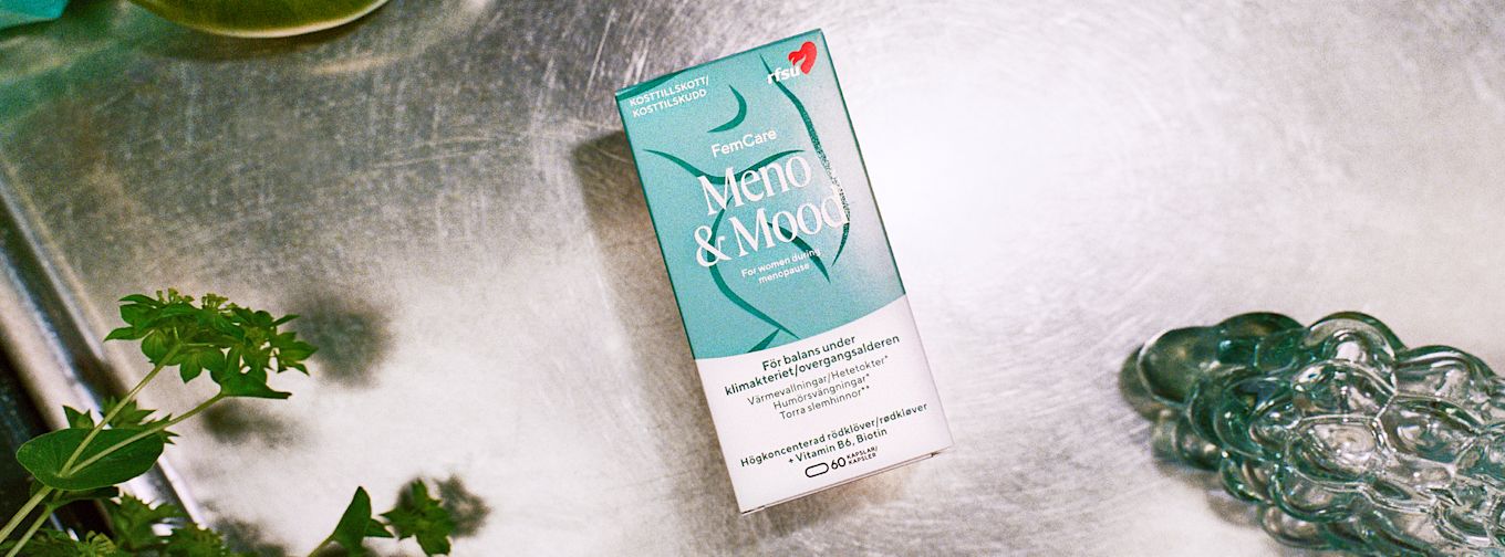 RFSU Meno & Mood är ett kosttillskott som innehåller ämnen speciellt utvalda för klimakteriebesvär, såsom vallningar och/eller svettningar samt humörsvängningar och även rastlöshet. Det innehåller bland annat rödklöver som liknar kroppens eget östrogen.